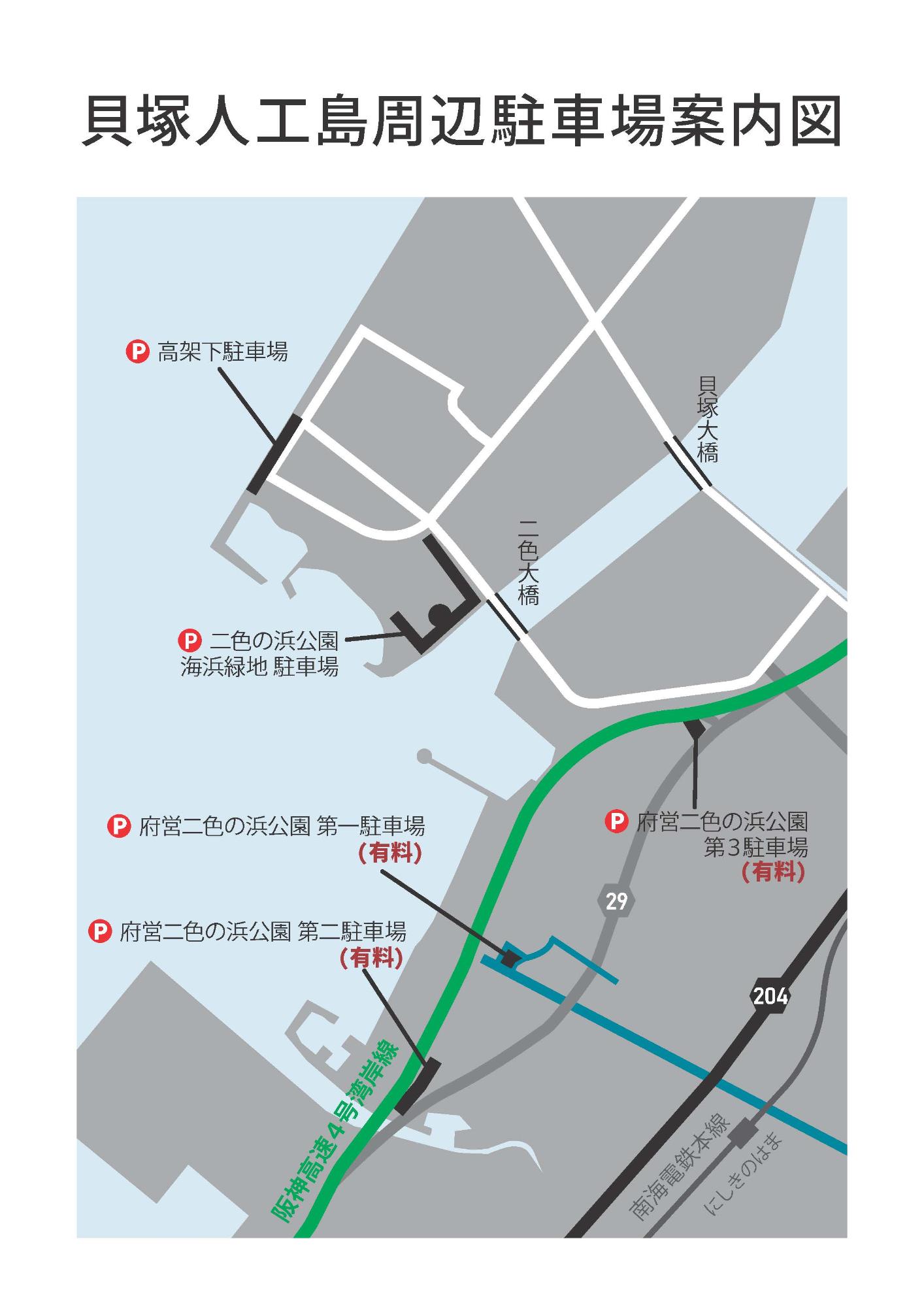 貝塚市役所 → 南海貝塚駅東口 → 二色の浜公園海浜緑地 → (貝塚市役所へ戻る)
