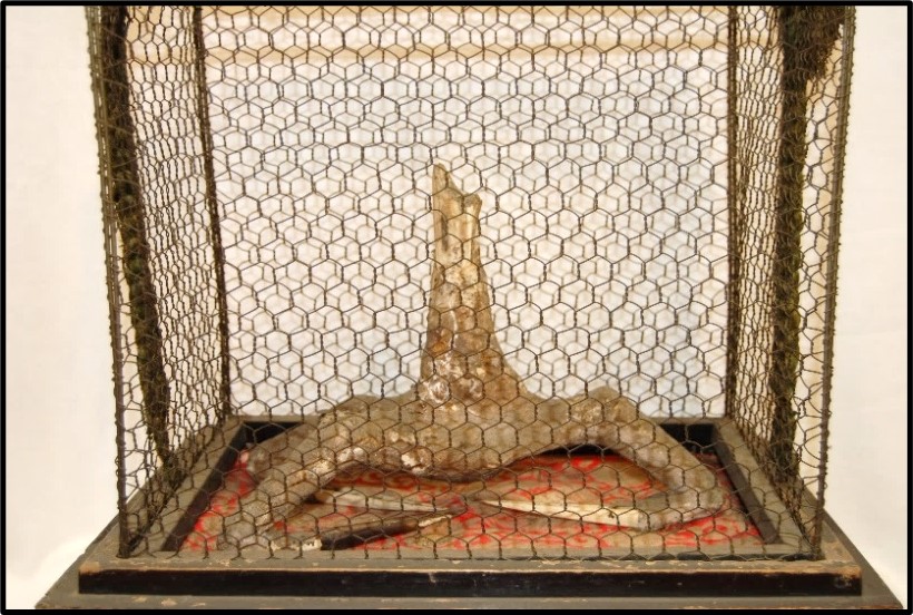 貝塚市水間にある水間寺は、山号を「龍谷山」(りゅうこくざん)といい、お寺の創建に関わって竜神にまつわる伝説が伝えられています。奈良時代、聖武天皇(しょうむてんのう)の勅命(ちょくめい)を受けた僧行基(ぎょうき)は、現在の貝塚市清児(せちご)付近で出現した十六童子(じゅうろくどうじ)に導かれ水間の滝を発見しました。そこで竜神の化身である老人から本尊である聖観音像(しょうかんのんぞう)を授けられ、その地に水間寺を創建したといいます。水間寺には、この伝説の地である「聖観世音出現の滝(降臨の滝)」の他、伝説の内容を記した縁起(えんぎ)類、伝説に登場する竜神がのこしたとされる竜の掌(てのひら)のミイラ「龍掌(りゅうしょう)」【写真1】や伝説の内容を描いた屏風絵等がのこされています(注1)。