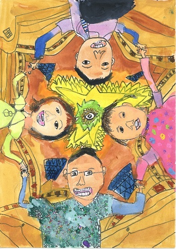 これは、れもんをしゅうかくする時をえがいた絵です。そして、びっくりする事にかごいっぱいになるほどレモンが入りました。すごく楽しくてうれしかったです。