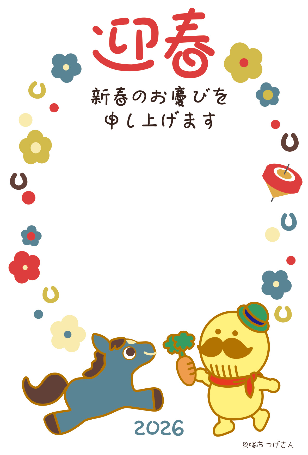 かわいいつげさんの年賀状 で新年のごあいさつは、いかがですか。